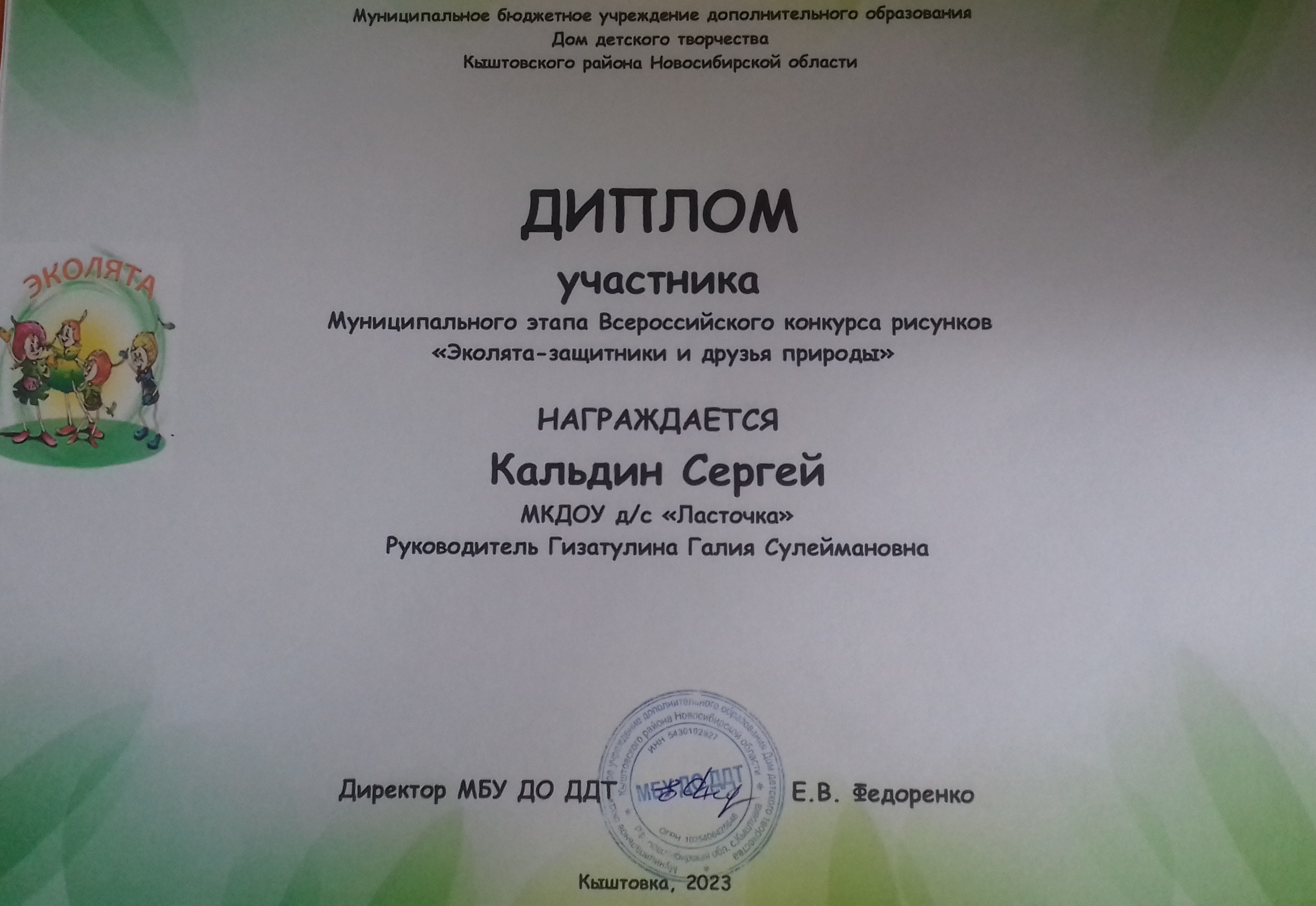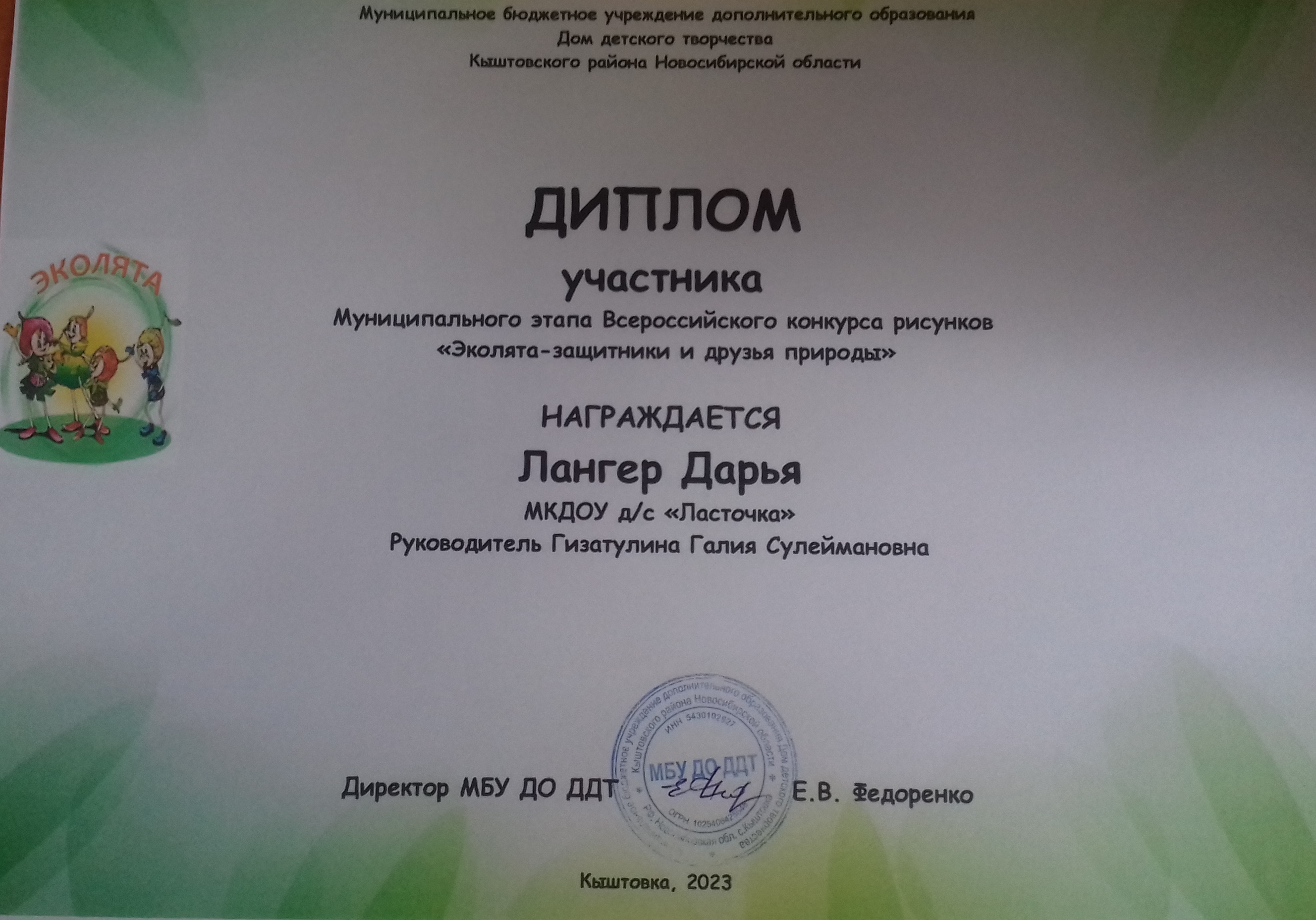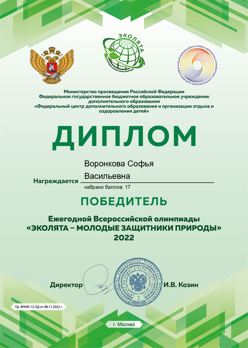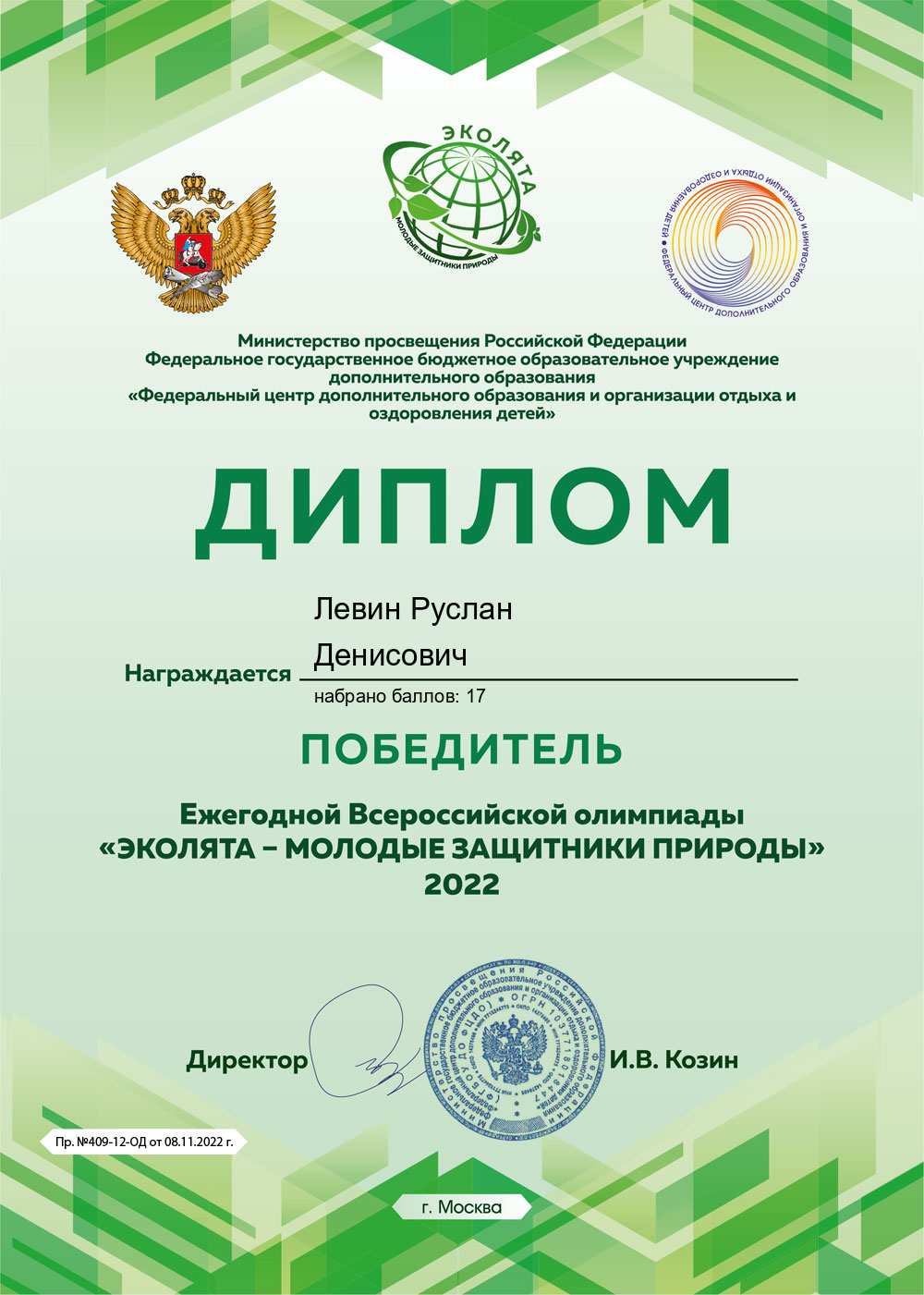 Сертификат Всероссийского урока "Эколята-молодые защитники природы"