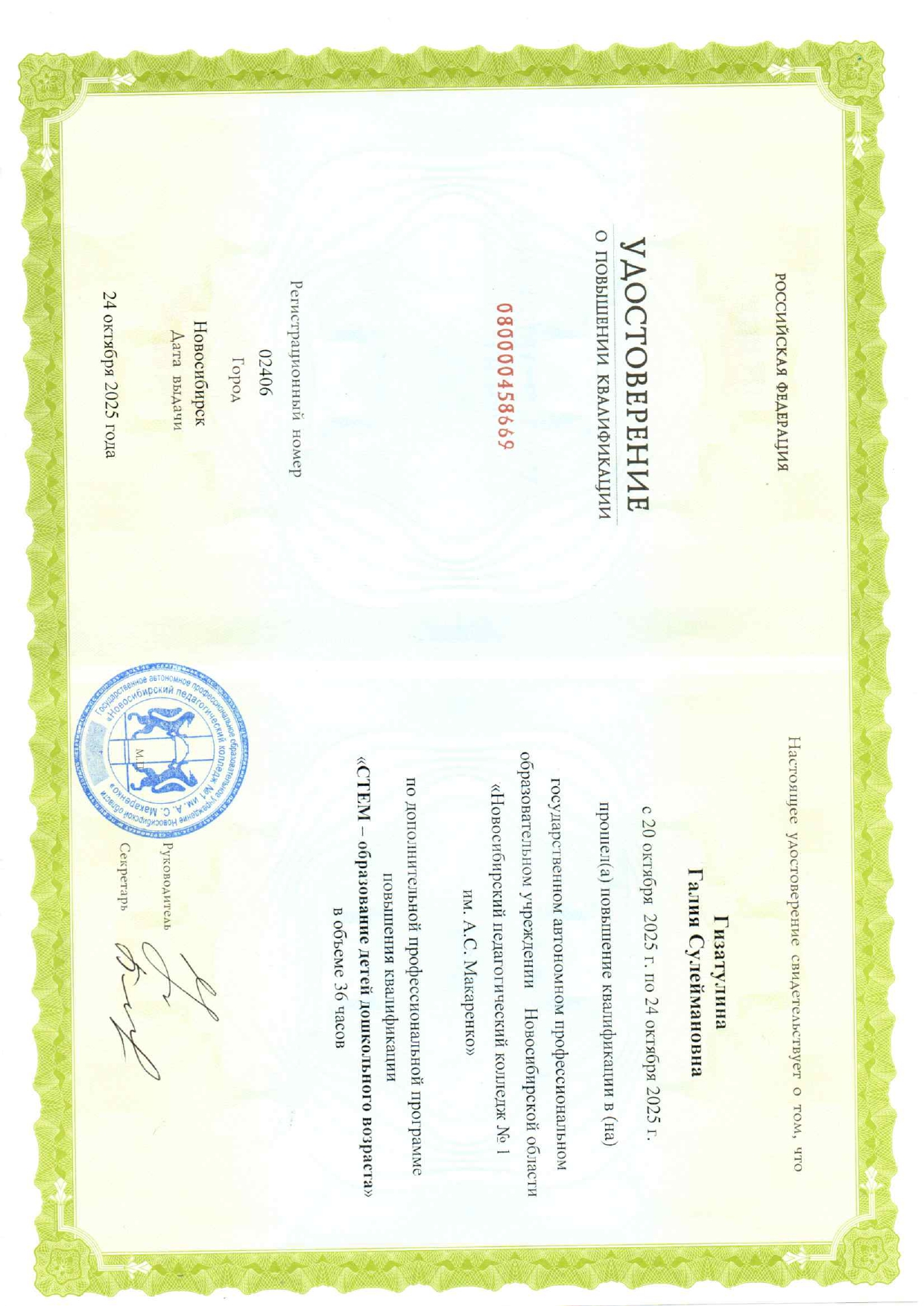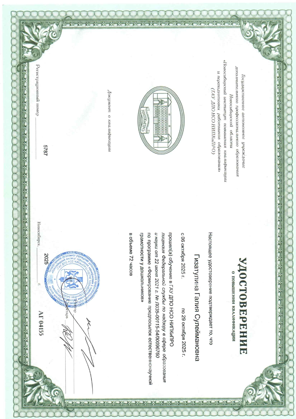 (Удостоверение о повышении квалификации ГАУ ДПО НСО "Новосибирский институт повышения квалификации и переподготовки работников образования" . 72часов. Направленность: медийные компетенции).